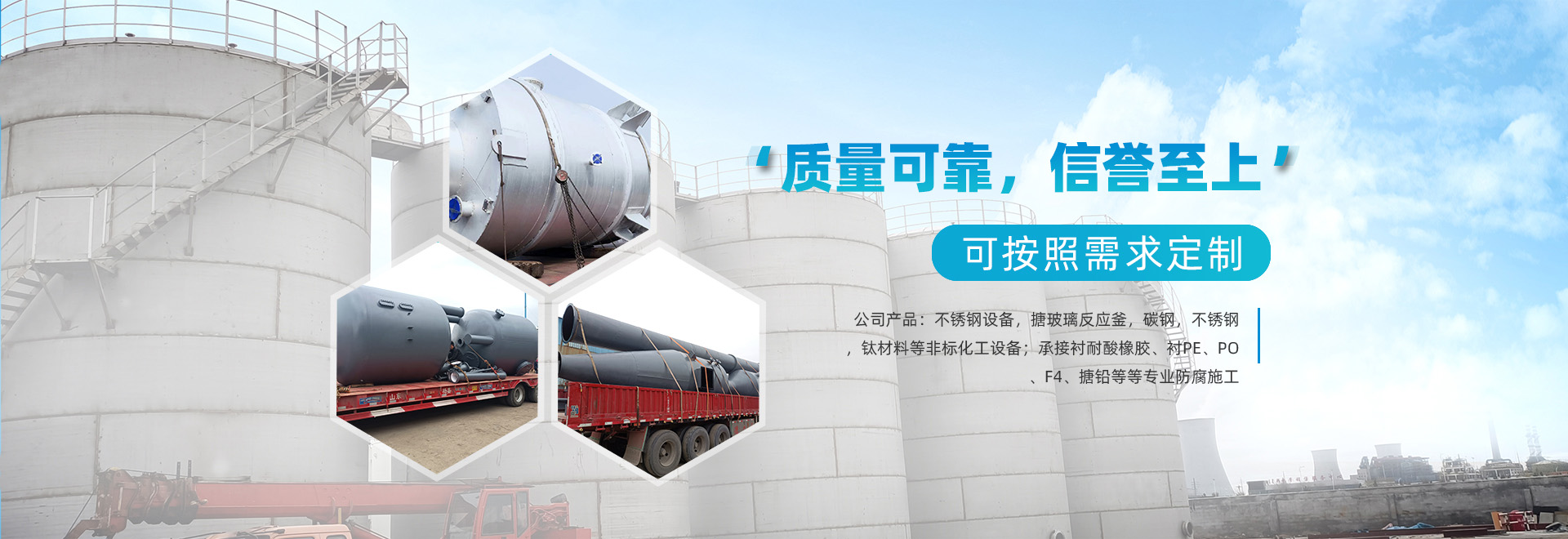 是一家專(zhuān)業(yè)的不銹鋼儲(chǔ)罐廠(chǎng)家,專(zhuān)注,主營(yíng):噴涂四氟設(shè)備,噴涂四氟,四氟噴涂,噴涂四氟設(shè)備,鋼襯四氟儲(chǔ)罐,不銹鋼儲(chǔ)罐,襯膠襯塑儲(chǔ)罐,不銹鋼設(shè)備,襯膠、襯塑、襯氟設(shè)備,管道防腐,攪拌器,鋁儲(chǔ)罐,鈦及鈦合金儲(chǔ)罐,不銹鋼反應(yīng)釜,吸收塔,不銹鋼設(shè)備,不銹鋼噴淋塔,不銹鋼計(jì)量罐,不銹鋼催化塔,石英砂過(guò)濾器,活性炭吸附柱,襯膠設(shè)備,混床,粉體料倉(cāng),襯膠酸儲(chǔ)罐,襯膠堿儲(chǔ)罐,襯膠儲(chǔ)罐,沉降槽襯膠,襯塑設(shè)備,襯塑儲(chǔ)罐,不銹鋼攪拌器,鋁合金設(shè)備,鋁合金料倉(cāng),襯四氟管件,襯四氟管道,襯氟儲(chǔ)罐...... MORE